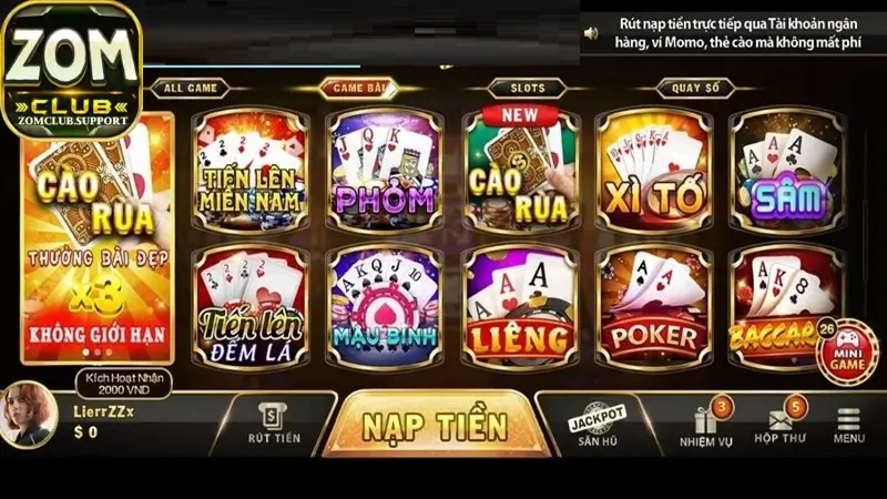 Khi nhắc đến game bài đổi thưởng, Zomclub chính là cái tên nổi bật sở hữu nhiều thể loại game bài hấp dẫn. Dưới đây là top 5 game bài Zomclub người chơi nên thử qua khi đến với nền tảng này: